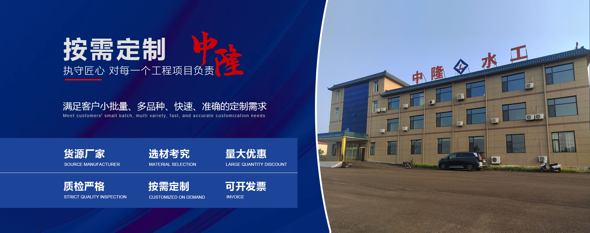 邢臺市中隆水工設(shè)備有限公司位于新河縣九龍工業(yè)園區(qū)占地面積20000平方米。北鄰北環(huán)路、西鄰西環(huán)路,交通便利。 公司堅持,依法經(jīng)營,誠信服務(wù)的宗旨,尋求合作共創(chuàng)輝煌。融科研制造銷售安裝,服務(wù)為一體的水工設(shè)備專業(yè)制造公司。優(yōu)質(zhì)制造設(shè)備,規(guī)格齊全,產(chǎn)品檢測體系完整,各項技術(shù)指標(biāo)均達到行業(yè)標(biāo)準,給客戶提供無憂合作! 主要產(chǎn)品有: &n···